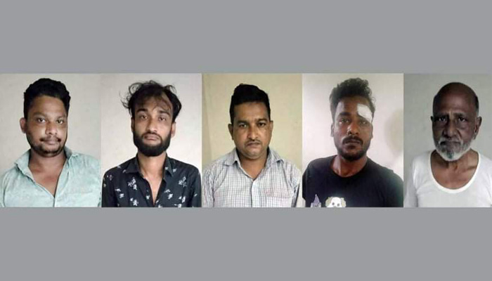 আটককৃতরা হলেন- ঢাকার দক্ষিণ কেরানীগঞ্জ থানার মহুরীপট্টি এলাকার মিজানের বাড়ির ভাড়াটিয়া ইয়াসিনের ছেলে লিটন (৩২), ফতুল্লার নন্দলালপুর এলাকার আনোয়ার হোসেনের বাড়ির ভাড়াটিয়া মৃত ইসহাক মিজির ছেলে ইমাম হোসেন (৩১), শরিয়তপুর জেলার জাজিরা থানার গফুর মোল্লাকান্দি গ্রামের মৃত আবুল কাশেমের ছেলে নাসির উদ্দিন (৪২), বরিশাল জেলার উজিরপুর থানার জুগির কান্দি গ্রামের মৃত ছমের উদ্দিনের ছেলে সিদ্দিক (৬০) ও ফতুল্লার ধর্মগঞ্জ ঢালিপাড়ার এলাকার শাওন গাজীর বাড়ির ভাড়াটিয়া আবুল হাসেমের ছেলে রেজওয়ান (৩০)।