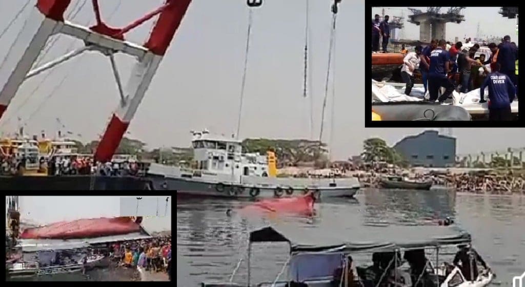 শ্বাসরুদ্ধকর অপেক্ষার পর সোমবার দুপুরে শীতলক্ষ্যা নদীতে ডুবে যাওয়া লঞ্চটি উদ্ধারের পর বেড়িয়ে আসছে লাশ