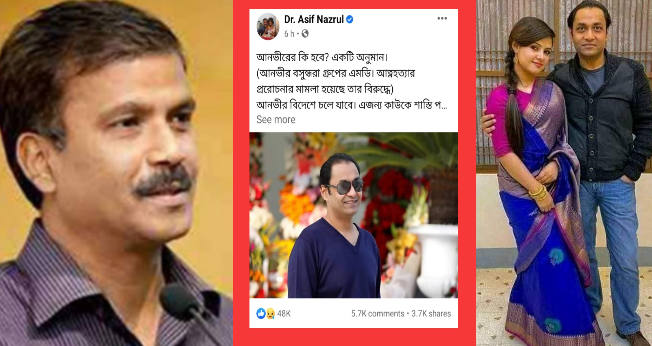এমতাবস্থায় মংগলবার ২৭ এপ্রিল রাত ৯ টায় ড. আসিফ নজরুল তার ফেসবুক পেইজে লিখেছেন সারাদেশে সর্বত্র তোলপাড় করা বসুন্ধরা গ্রুপের এমডি আনভীরের নারী ঘটিত ঘটনা নিয়ে । যা নীম্নে হুবহু তুলে ধরা হলো :