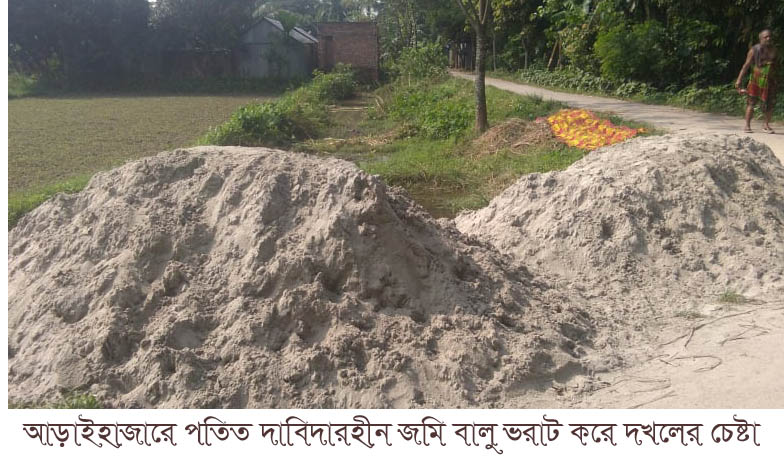 জানা যায়, আড়াইহাজার পৌরসভার কামরানীরচর মৌজায় আর. এস ৮৩৯ খতিয়ানে দাগ নং আর, এস-৩১৩৪/২৮০৮ মুলে ১৮ সতাংশ জমি দীর্ঘ ৪০/৪৫ বছর যাবত দাবিদারহীন পতিত অবস্থায় পড়ে আছে। উক্ত জমি ভাতা প্রাপ্ত বীর মুক্তিযুদ্ধা সফিউদ্দিন খান এবং রমিজ উদ্দিন মোল্লা অসহায় ভুমিহীন হিসাবে দাবিদারহীন অর্পিত সম্পত্তি সরকারী বিধি মোতাবেক লিজ নেওয়ার জন্য উপজেলা নির্বাহী অফিসারের কাছে আবেদন করেন। কিন্তু উপজেলা প্রসাশনের কোন অনুমতি ছাড়াই দাসপাড়া গ্রামের মৃত ফজলুল হকের ছেলে হৃদয় ও তার সহযোগিরা বালু ভরাট করে ওই জমি দখলের চেষ্টা চালাচ্ছে।