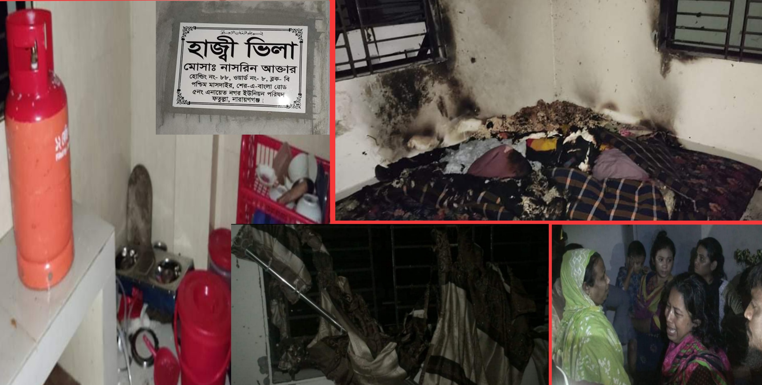 স্বজনরা জানান, গ্যাসের চুলার লিকেজ থেকে গ্যাস নির্গত হয়ে ওই ফ্ল্যটের বিভিন্ন রুমে তা জমাট বেঁধে থাকে। রাতে খাওয়ার পর পরিবারের কেউ সিগারেট অথবা মশার কয়েল জ্বালানোর উদ্দেশ্যে আগুন জ্বালালে মুহূর্তের মধ্যে ঘরে আগুন ধরে যায় এবং অন্যান্য রুমে ছড়িয়ে পড়ে। এ সময় পরিবারের পাঁচজন দগ্ধ হন। তাদের ডাক চিৎকারে বাড়ির অন্যান্য ফ্ল্যাটের বাসিন্দারা এসে আগুন নেভানোসহ দগ্ধদের ঢাকা মেডিকেলে পাঠায়।
