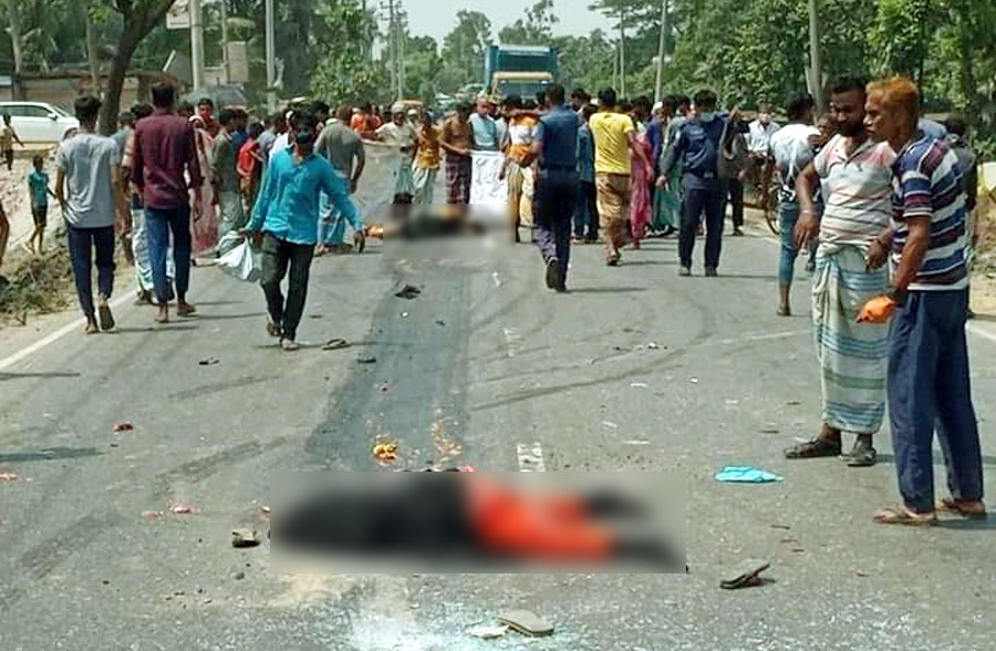 মঙ্গলবার দুপুরে উপজেলার এশিয়ান হাইওয়ে সড়কের কাঞ্চন পৌরসভার চরপাড়া এলাকায় এ মর্মান্তিক দুর্ঘটনা ঘটে।