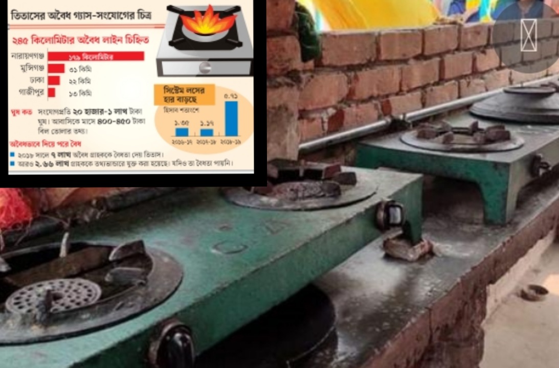 ঢাকা ও আশপাশে ২৪৫ কিলোমিটার অবৈধ পাইপলাইন, গ্রাহক প্রায় ১০ লাখ। বিল তোলা হয়, অবশ্য সরকার পায় না।