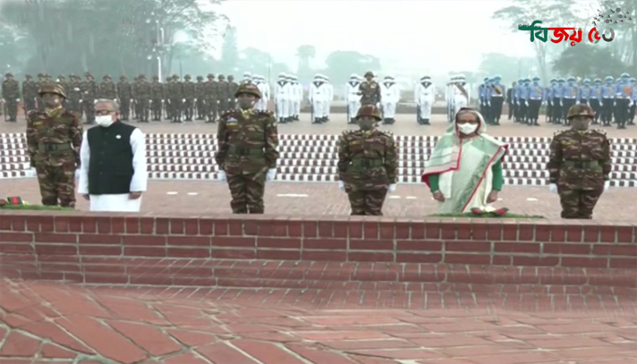 বিজয়ের সুবর্ণজয়ন্তীতে সাভারে জাতীয় স্মৃতিসৌধে মুক্তিযুদ্ধের বীর শহীদদের প্রতি শ্রদ্ধা নিবেদন করেছেন রাষ্ট্রপতি মো. আবদুল হামিদ ও প্রধানমন্ত্রী শেখ হাসিনা।