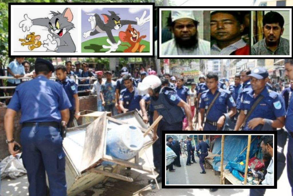 প্রসিদ্ধ জেলা হিসেবে পরিচিত নারায়ণগঞ্জ শহরের মাত্র কয়েক কিলোমিটার সড়কের ফুটপাত নিয়ে ব্যাপক আলোচনা সমালোচনা, মেয়র ও সংসদ সদস্যের চরম দ্বন্ধ, ব্যাপক চাঁদাবাজির ঘটনা প্রকাশ্যে ঘটলেও জেলা পুলিশের পক্ষ থেকে বারবারই ঘটেছে ইদুর বিড়াল খেলা । এ যেন টেলিভিশনের কার্টুন টম এন্ড জেরির আরেক খেলা দেখাচ্ছেন নারায়ণগঞ্জের আইনশৃংখলা বাহিনী
