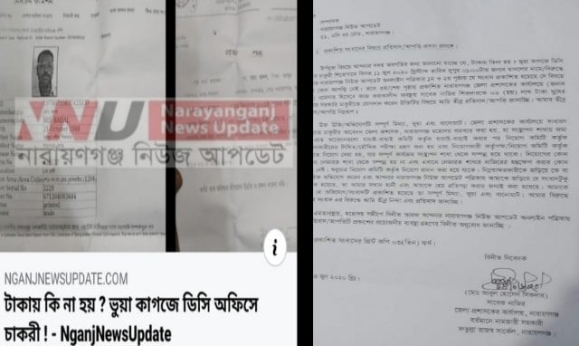 এ বিষয়ে ভূয়া কাগজ পত্রের মাধ্যমে এবং ঘুষের বিনিমনে নারায়ণগঞ্জ জেলা প্রশাসক কার্যালয়ে এক সময়ের ওমেদার মোঃ বাদল চাকুরীতে যোগদান করেন ।