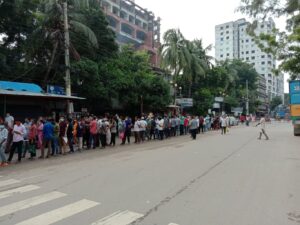 টিকার জন্য ভোর থেকে লাইনে দাঁড়িয়ে হাজারো মানুষ