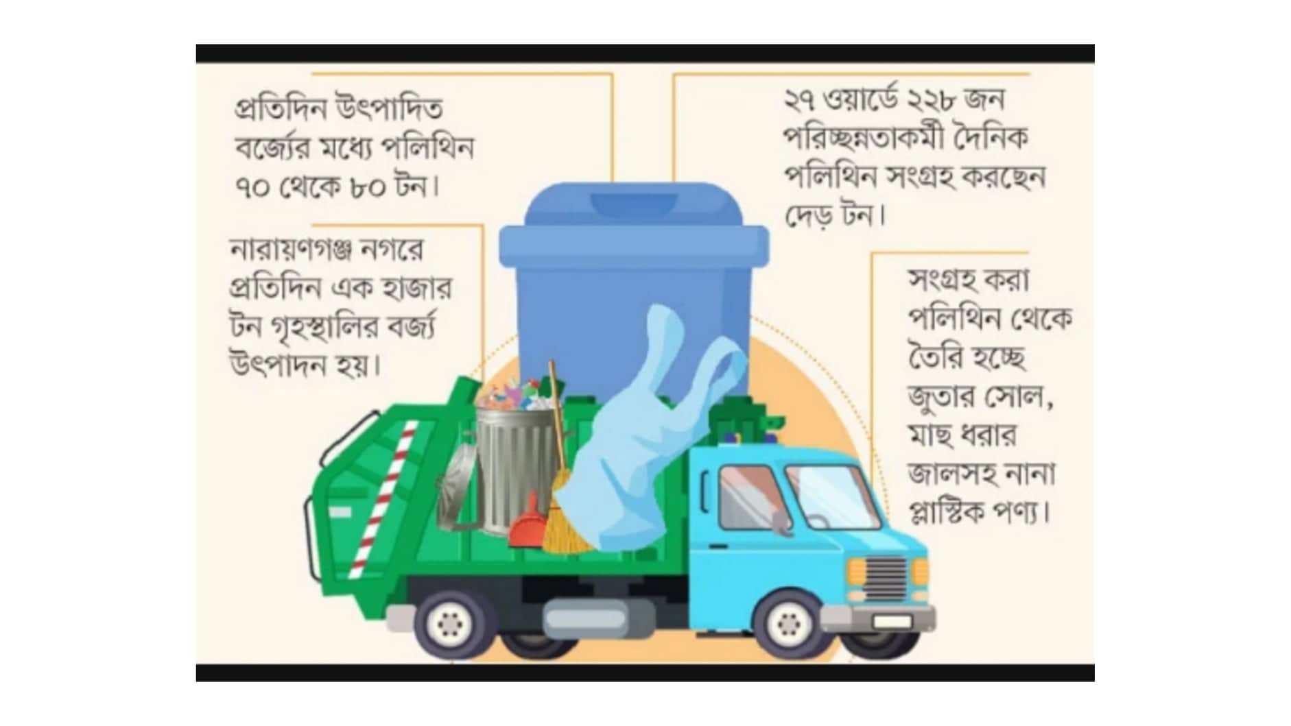 নারায়ণগঞ্জ সিটি করপোরেশনের নগর–পরিকল্পনাবিদ মঈনুল হোসেন জানান, প্রতিদিন সিটি করপোরেশনের তিনটি অঞ্চলে এক হাজার টন বর্জ্য উৎপাদিত হয়। এর মধ্যে ৭০ থেকে ৮০ টন পলিথিন রয়েছে। তাঁরা প্রতিদিন দেড় টনের মতো পলিথিন সংগ্রহ করছেন। এতে পরিবেশ ও জনস্বার্থের উন্নতি হবে, ধীরে ধীরে নারায়ণগঞ্জ একটি বাসযোগ্য নগরী হিসেবে গড়ে উঠবে।
