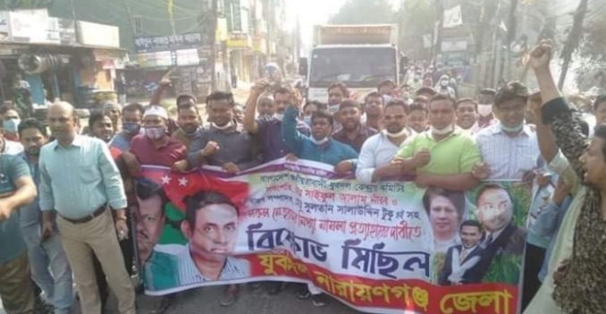 নারাণণগঞ্জ জেলা যুবদলের সভাপতি শহিদুল ইসলাম টিটুর নেতৃত্বে বিক্ষোভ মিছিলে উপস্থিত ছিলেন জেলা যুবদলের সহ-সভাপতি সালাউদ্দিন চৌধুরী সালামত, ইসমাইল খান, দেলোয়ার হোসেন, আফজাল কবির, যুগ্ম সম্পাদক রাসেল আহমেদ, শাহিন আহমেদ, আরিফুজ্জামান ইমন, সহ- সম্পাদক সেলিম হোসেন দিপু, ফতুল্লা থানা যুবদলের আহ্বায়ক মাসুদুর রহমান ও যুগ্ম আহ্বায়ক সালাউদ্দিন সহ জেলা যুবদলের বিভিন্ন পর্যায়ের নেতাকর্মীরা।