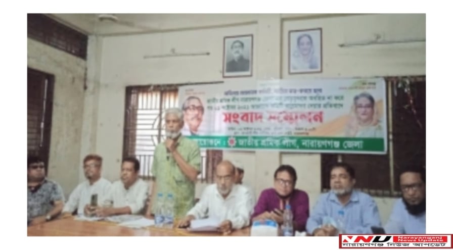 আয়োজিত সংবাদ সম্মেলনে বক্তব্য রাখেন, শ্রমিকলীগের প্রয়াত সভাপতি শুক্কুর মাহমুদের নেতৃত্বাধীন কমিটির সাধারণ সম্পাদক মুক্তিযোদ্ধা মাইনউদ্দিন আহমেদ বাবুল, সহসভাপতি মো: শহীদুল্লাহ, শ্রমিকলীগের আরেকটি জেলা কমিটির সভাপতি জনতা ব্যাংক সিবিএ নেতা মো: আব্দুস সালাম, সাধারণ সম্পাদক ও সোনালী ব্যাংক সিবিএ নারায়ণগঞ্জ কার্যালয়ের সভাপতি আকতার হোসেন, সহসভাপতি হুমায়ন কবির।