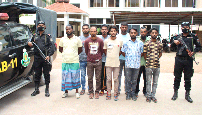 গ্রেফতারকৃতরা হলো, মোঃ জুয়েল ওরফে মনির (৩০), মোঃ শাহীন (২৩), মোঃ শাহরুফ দেওয়ান (২৪), মোঃ শরিফ (২০), মোঃ শহিদ (৩০), দেলোয়ার ওরফে দেলু (৩৮), মোঃ রমজানুল জামিল (৩৬), নাজিম উদ্দিন (৩৮) এবং মোঃ সুমন (৩১)। গ্রেফতারকৃত আসামীদের হেফাজত হতে চাঁদাবাজির নগদ ৬ হাজার ১৩০ টাকা উদ্ধার করা হয়।