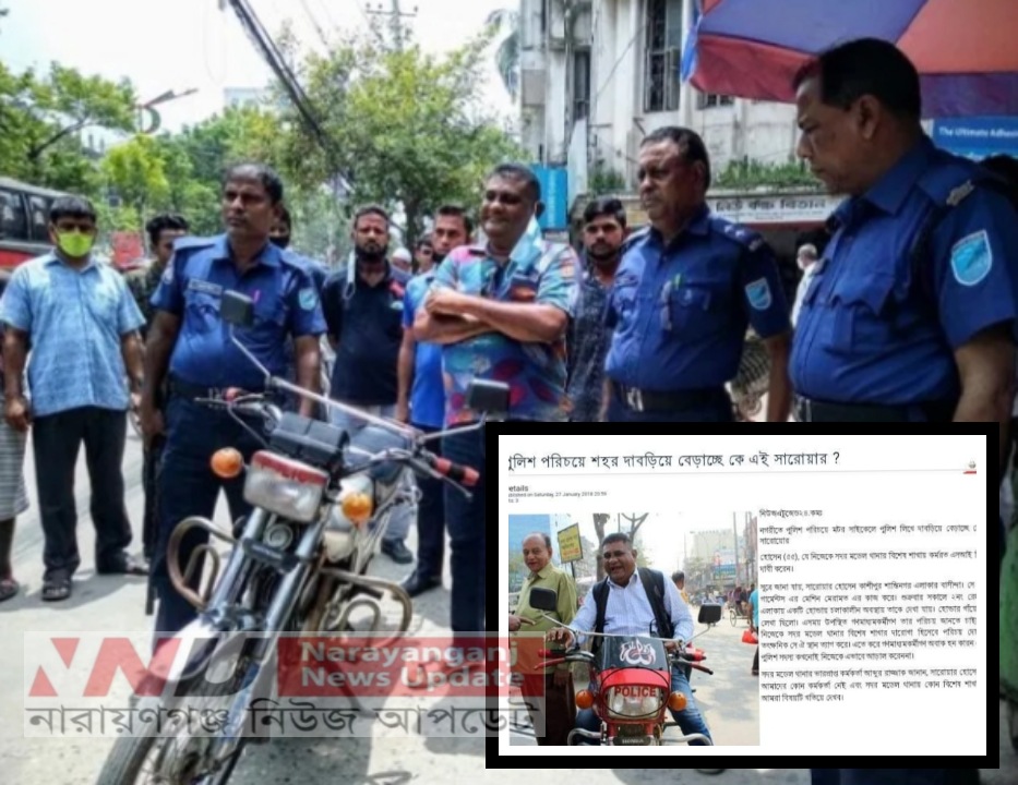 নারায়ণগঞ্জ মহানগরীর চাষাড়া, ফতুল্লা, লিংক রোডসহ বিভিন্ন এলাকায় পুলিশ পরিচয় দিয়ে অপকর্ম করায় আবারো সেই সারোয়ার নামের ভুয়া পুলিশকে আটক করে পুলিশে দিয়েছে সাংবাদিকরা ।