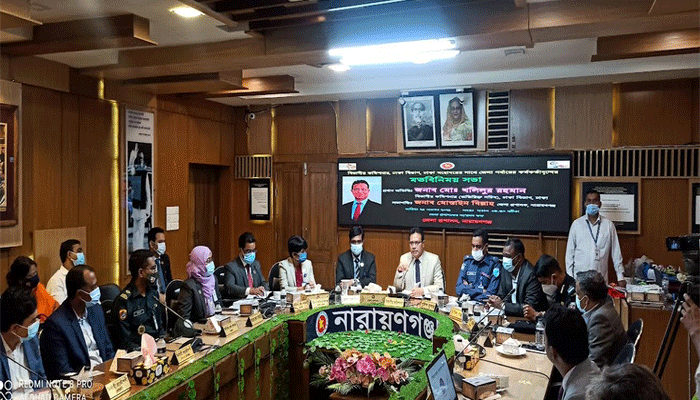 জেলা প্রশাসক মোস্তাইন বিল্লাহ এর সভাপতিত্বে অন্যদের মধ্যে বক্তব্য রাখেন অতিরিক্ত পুলিশ সুপার (প্রশাসন) মোস্তাফিজুর রহমান, র‌্যাব-১১ এর অধিনায়ক লে. কর্ণেল তানভীর মাহমুদ পাশা, জেলা সিভিল সার্জন ডা. মোহাম্মদ ইমতিয়াজ, নারায়ণগঞ্জ ৩০০ শয্যাবিশিষ্ট হাসপাতালের চিকিৎসা তত্বাবধায়ক ডা. এম এ বাশার প্রমুখ। দুপুরে সভা শেষে নারায়ণগঞ্জের বিভিন্ন দফতর পরিদর্শন করেন ঢাকা বিভাগীয় কমিশনার মো: খলিলুর রহমান।