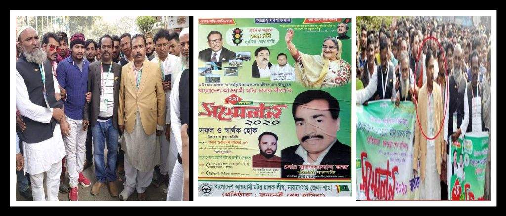 তার আগমন জানান দিতে পোষ্টার লাগাচ্ছেন সিদ্ধিরগঞ্জের বিভিন্ন পাড়া-মহল্লায় ও অলিগলিতে । নিজেকে বাংলাদেশ আওয়ামী মটর চালকলীগ নারায়ণগঞ্জ জেলা শাখার ভারপ্রাপ্ত সভাপতি পরিচয় দিয়ে সাটানো ঐ ব্যানার এখন সিদ্ধিরগঞ্জের সর্বত্র শোভা পাচ্ছে। সংগঠনটির ২য় জাতীয় সম্মেলনকে কেন্দ্র করে ২৬ জানুয়ারী মিছিল নিয়ে শোডাউন করেছেন নুর হোসেনের আদরের ছোট ভাই নুরুজ্জামান জজ ওরফে ছোট মিয়া।