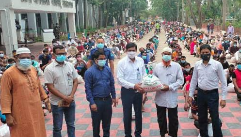 করোনায় কর্মহীন হয়ে যাওয়া পরিবহণ শ্রমিকদের হাতে প্রধানমন্ত্রীর দেওয়া খাদ্য সামগ্রী তুলে দিয়েছে নারায়ণগঞ্জ জেলা প্রশাসন।