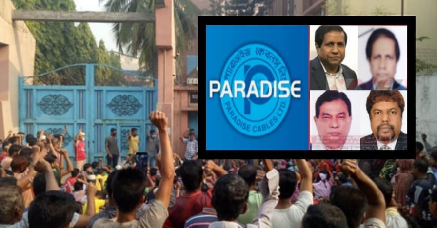 বকেয়া বেতনের দাবিতে বিক্ষোভ সমাবেশ ও মিছিল করেছে প্যারাডাইজ ক্যাবলস কারখানার শ্রমিকরা।