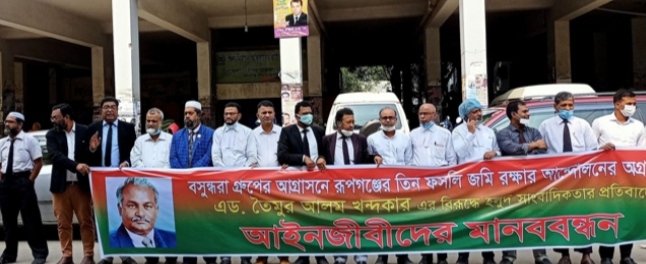 ভুমিদস্যুদের বিরুদ্ধে তৈমূরপন্থী আইনজীবীদের নারায়ণগঞ্জে মাববন্ধন