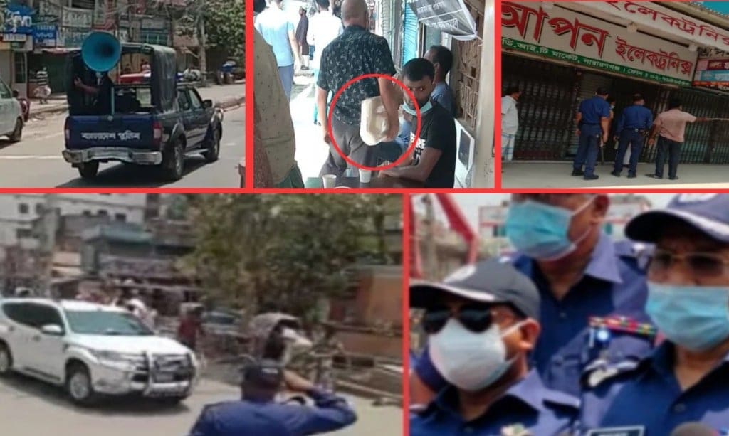 কৌশলে শহরের অনেক মার্কেটের দোকানী কর্মচারী ও ক্রেতাদের সাথে আলোচনা করে জানা যানা যায়, কিসের লকডাউন ? কে মানে ? সরকারের কাম সরকার করছে আমাদের কাম আমরা করতেছি  । লকডাউনের শুরুর দিন এসপি জায়েদুল আলমের শো ডাউনের পর শহরের কোথাও কোন পুলিশ মাইকিং করে নাই । শহরের ফুটপাতের প্রতিটি হকার যেমন নিয়মিত মাসোয়ারা দিয়ে শহরকে জিম্মি করে রেখেছে ঠিক তেমনি অসাধু অসংখ্য ব্যবসায়ী নারায়ণগঞ্জ থানার ক্যাশিয়ার ডিবি পুলিশের ক্যাশিয়ার ও সিআইডির ক্যাশিয়ার কে নিয়মিত মাসোয়ারা দিয়ে অপরাধ কার্যক্রম চালিয়ে যাচ্ছে । ফলে অসাধু ব্যবসায়ীরা থাকে ধরা ছোয়ার বাইরে । ‍ঠিক তেমনি এই লকডাউনের আগে থেকেই অসাধু ব্যবসায়ীরা আইনশৃংখলা বাহিনীর ওই সকল ক্যাশিয়ারদের সাথে যোগাযোগ করে লকডাউনে তাদের অপকর্ম চালু রাখতে  নিজেদের পথ খোলা রেখেছে । যার কারণে পুলিশের গাড়িতে মাইক থাকলেও মাইকিং হয় না ! এবার বুঝেন কোথায় আছি আমরা ? এসপি জাহিদুল আলমসহ অন্যান্য পুুলিশ কর্মকর্তারা লকডাউনের প্রথম দিন বুধবার (১৪ এপ্রিল) দুপুরে শহরে শো ডাউনের পর আর সেই চিত্র দেখা যাচ্ছে না । পুলিশের পক্ষ থেকে পেশাদারিত্ব না থাকার ফলে লকডাউনের মতো সরকারের কঠোর আদেশ ভেঙ্গে পরেছে । এভাবেই মন্তব্য করেছেন অনকে অসাধু ব্যবসায়ী ।