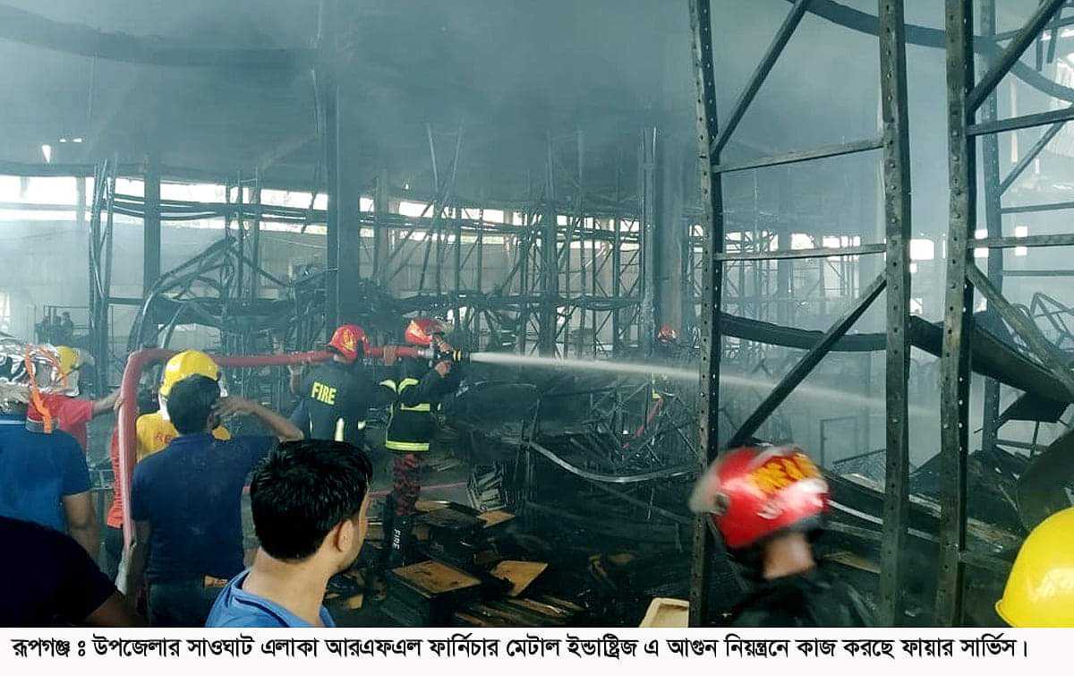 নারায়ণগঞ্জের রূপগঞ্জে আরএফএল ফার্নিচার মেটাল ইন্ডাষ্ট্রিজে ভয়াবহ অগ্নিকান্ডের ঘটনা ঘটেছে। আগুনে পুড়ে কমপক্ষে সাড়ে ৫ কোটি টাকার ক্ষয়ক্ষতি হয়েছে বলে দাবী করেছেন মালিক পক্ষ।
