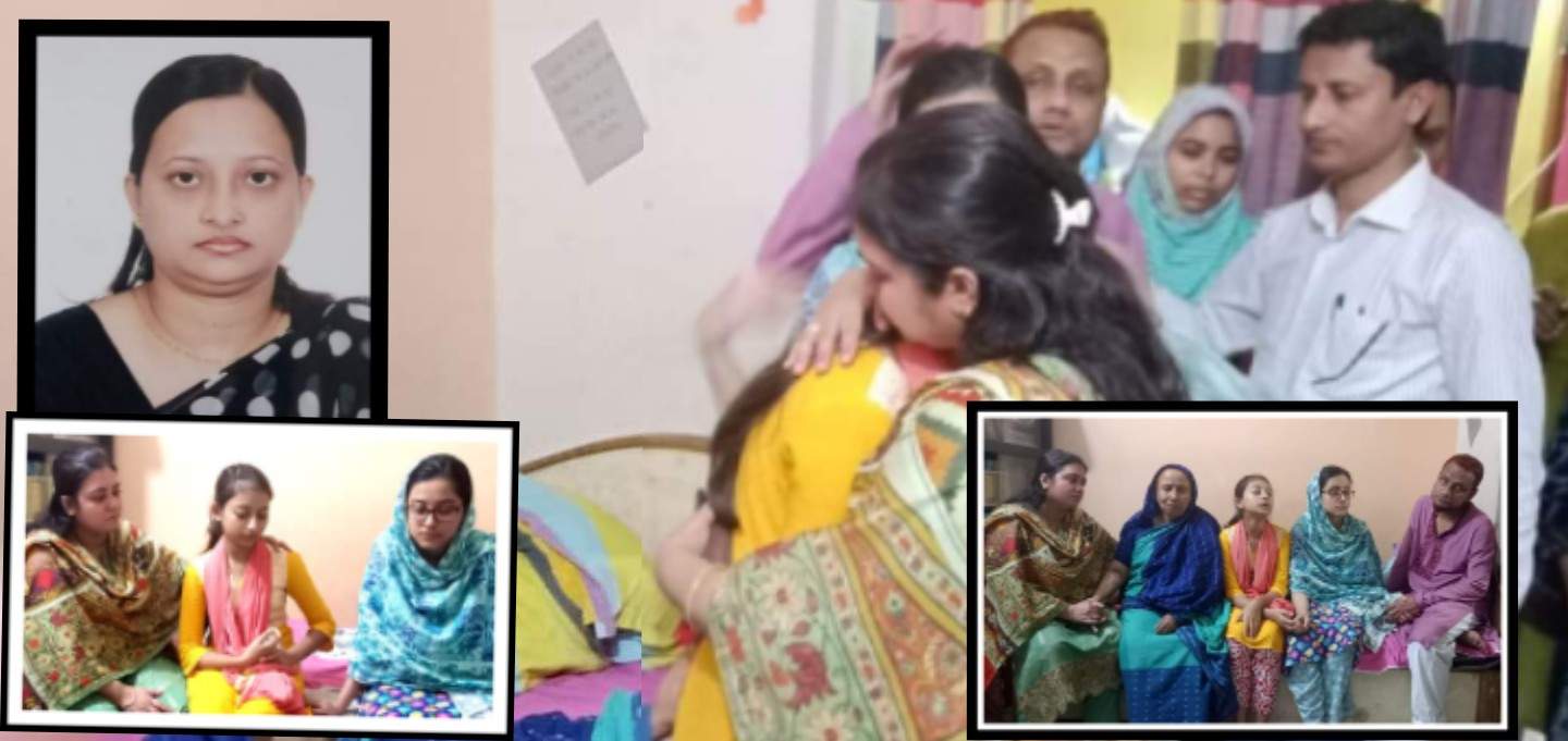 গতকাল শনিবার দুপরে শহরে মাসদাইর এলাকায় এন এস টাওয়ারের তৃতীয় তলার ফ্ল্যাটের বাসিন্দা নিহত শিক্ষিকা মাহমুদা বেগমের বাড়িতে গিয়ে দেখা যায়, মা হারোনের শোকে দুই মেয়ের কান্না কেউ থামাতে পারছে না। বড় মেয়ে মেডিকেলে প্রথম বর্ষের ট্রাম পরীক্ষা থাকলেও পরীক্ষায় অংশগ্রহণ করতে পারেনি। মায়ের শোকে বারবার মূর্ছা যাওয়া দুই মেয়েকে সান্তনা দিতে গিয়ে বারবার কাঁদছে বাবা নিজেই।