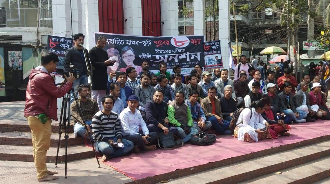 অনশন কর্মসূচিতে বক্তারা বলেন, ৮ বছরে ৭১ বার সাংবাদিক সাগর-রুনির হত্যাকাণ্ডের তদন্ত প্রতিবেদন দাখিলের সময় পেরিয়েছে। একটি রাষ্ট্রের জন্য এর চেয়ে বড় ব্যর্থতা আর কি হতে পারে? যেখানে সাংবাদিকরা সমাজের বিভিন্ন অন্যায় অবিচারের বিরুদ্ধে কাজ করে জনসাধারণের কথা তুলে ধরে দেশ থেকে বিশ্বে। কিন্তু এই তাদের বিচারের ক্ষেত্রে যদি এত বিলম্ব হয় তাহলে সাধারণ মানুষের অবস্থান কোথায় তা ধারণা করা যায়।