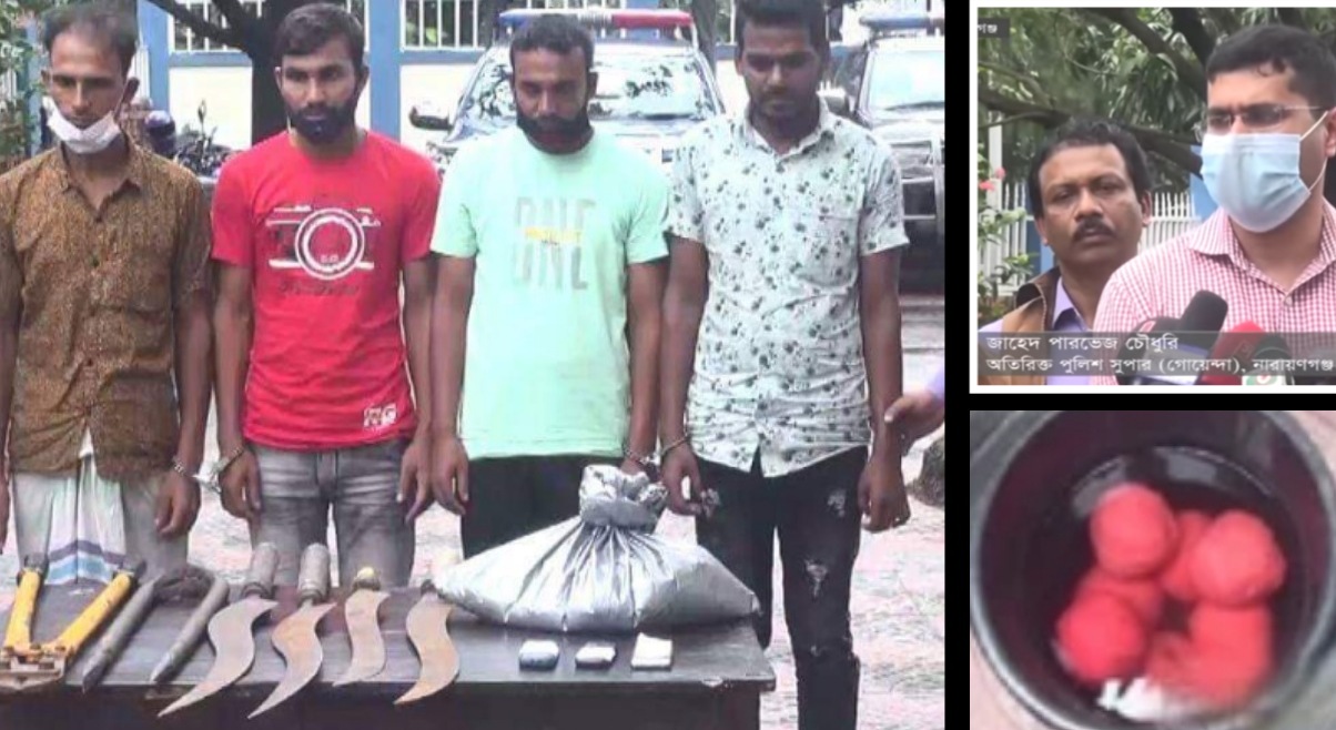 সোনারগাঁয়ে বোমা ও অস্ত্রসহ ডাকাত দল আটক