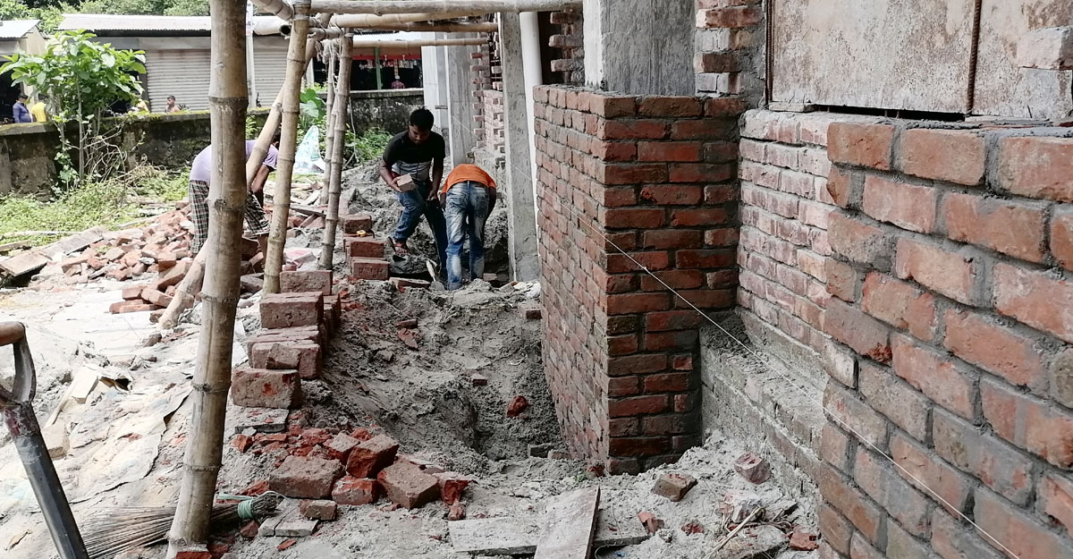 স্থানীয়রা জানান, পুরাতন ভবনের পরিত্যক্ত ইট ব্যবহার করা হয়েছে চলমান নির্মাণ কাজে। ব্যবহার করা হচ্ছে নিম্নমানের বালু। ব্যবহার অনুপযোগী ইটের কংকর ভেঙে ঢালাইয়ের কাজ করা হয়েছে এমন অভিযোগও স্থানীয়দের।