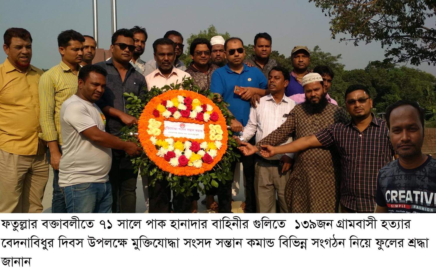 এদিন নারায়ণগঞ্জ জেলা মুক্তিযোদ্ধা সংসদ সন্তান কমান্ড, “আমরা মুক্তিযোদ্ধার সন্তান” সংগঠনের নেতৃবৃন্দের সঙ্গে বিভিন্ন সংগঠন যথাযথ মর্যাদায় দিবসটি পালন করেছেন। কানাইনগর ছোবহানিয়া উচ্চ বিদ্যালয় মাঠে অবস্থিত স্মৃতি স্তম্ভে ফুল দিয়ে বিনম্র শ্রদ্ধা জানান মুক্তিযোদ্ধা সংসদ সন্তান কমান্ডের পক্ষে আলামিন প্রধান, নূর আলম আকন্দ, হোসাইন মোঃ রাসেল, অজিউল্লাহ, হেলাল মিয়া নারায়ণগঞ্জ জেলা ঘাতক দালাল নির্র্মূল কমিটির জেলা শাখার সভাপতি চন্দন শীলের পক্ষে সওদাগর খান, আলোকিত বক্তাবলী সংগঠনের সভাপতি নাজির হোসেন, সাধারণ সম্পাদক আবুল কালাম আজাদ, সাংগঠনিক সম্পাদক বাদল হোসেন ববি, সাবেক আহবায়ক মাশফীকুর রহমান শিশির, শাহাদাৎ হোসেন আকাশ প্রমুখ।