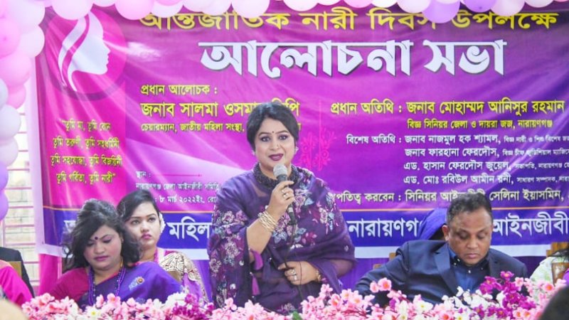 মঙ্গলবার (৮ মার্চ) নারায়ণগঞ্জ জেলা আইনজীবী সমিতির মহিলা আইনজীবীদের আয়োজনে আন্তর্জাতিক নারী দিবস উপলক্ষে আয়োজিত এক সভায় তিনি এসব কথা বলেন।