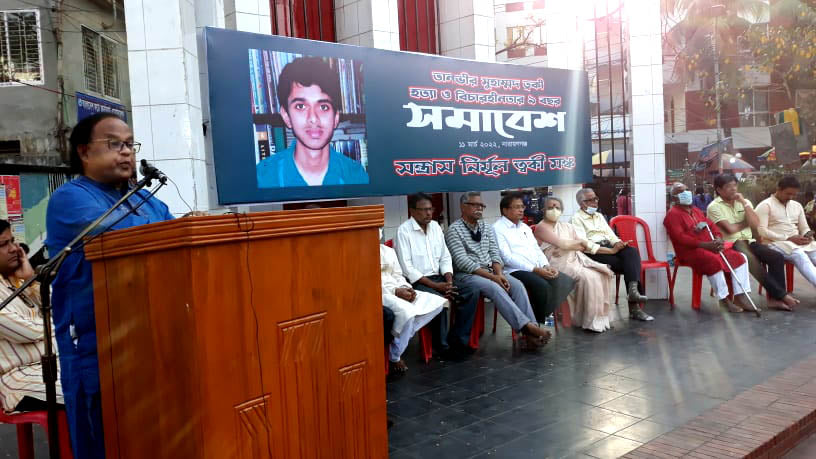 তিনি আরও বলেন, ত্বকী হত্যার ৫জন আসামি আদালতে হাজিরা দিচ্ছে। তাহলে এরা কারা ? তারা কিন্তু শীর্ষ বিচারকের আদালতে হাজিরা দিচ্ছে। যারা বিচার করবে তাদের সামনে রাজনীতিক নেতৃবৃন্দকে এভাবে যদি প্রশয় দেওয়া হয় তাহলে আইনের শাসন আর থাকবে না। তাই আপনারা এ সমস্ত অনুষ্ঠানে এসে ত্বকী হত্যার বিচারকে আপনারা প্রশ্নবিদ্ধ করনে না।