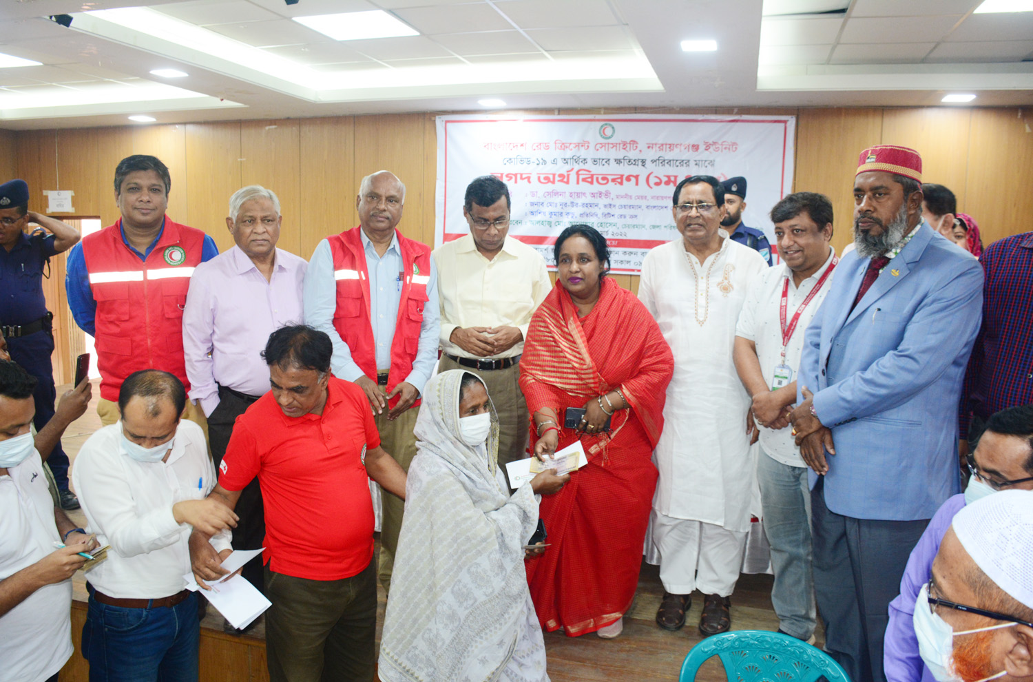 নারায়ণগঞ্জ রেড ক্রিসেন্ট ইউনিট এর চেয়ারম্যান মো. আনোয়ার হোসেন জানান, ‘বাংলাদেশ ডে ক্রিসেন্ট সোসাইটি সকল ধরনের দুর্যোগে সরকারের সহযোগি প্রতিষ্ঠান হয়ে সবার আগে ভুক্তভোগি জনগোষ্ঠীকে জাত, ধর্ম, বর্ণ ভেদাভেদ না করে সহায়তা করে আসছে। এই ধারাবাহিকতায় নারায়ণগঞ্জে ব্রিটিশ রেড ক্রসের সহযোগিতায় এক হাজার পরিবারের মধ্যে দুই ধাপে ৫ হাজার টাকা করে মোট দশ হাজার টাকা নগদ অর্থ সহায়তা প্রধান করা হবে। যার ধারাবাহিকতায় আজকে ৫ হাজার টাকা দেওয়া হচ্ছে ৫০০ পরিবারের মধ্যে।