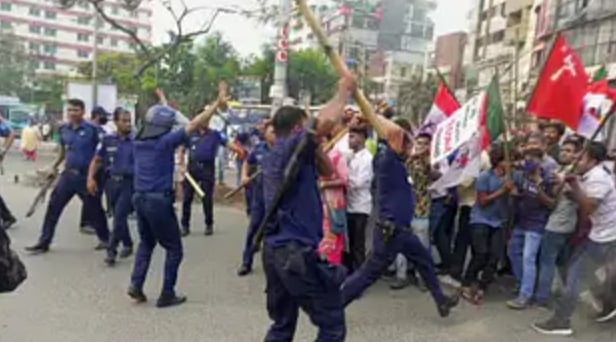 হরতালের সমর্থনে নারায়ণগঞ্জে বাম গণতান্ত্রিক জোটের নেতা-কর্মীদের বের করা মিছিলে লাঠিপেটা করেছে পুলিশ।
