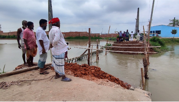 স্থানীয়রা বলছেন, নদীর পানির তীব্র চাপ ও বন্যার প্রকোপে গত চারদিন আগেই ভেঙ্গে যায় আরসিসি ঢালাইয়ের ওই সড়কটি। এতে এলাকাবাসীর মাঝে দেখা দিয়েছে বন্যা আতঙ্ক। এদিকে সড়ক ভেঙে যাওয়ায় যাতায়াতে কষ্ট হচ্ছে স্থানীয় বাসিন্দাদের। ভেঙে যাওয়া সড়কের দুই দিকের মানুষের চলাচল বন্ধ রয়েছে। যদিও চলাচলের সুবিধার্থে বর্তমানে সড়কটির বাঁশ দিয়ে মেরামতের কাজ চলছে।