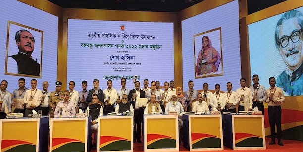 প্রথমবারের মতো ‘বঙ্গবন্ধু জনপ্রশাসন পদক’ পেলেন প্রশাসনের ২৭ জন কর্মকর্তা ও ৪টি সরকারি প্রতিষ্ঠান। শনিবার (২৩ জুলাই) রাজধানীর ওসমানী স্মৃতি মিলনায়তন থেকে তাদের হাতে পদক তুলে দেওয়া হয়।