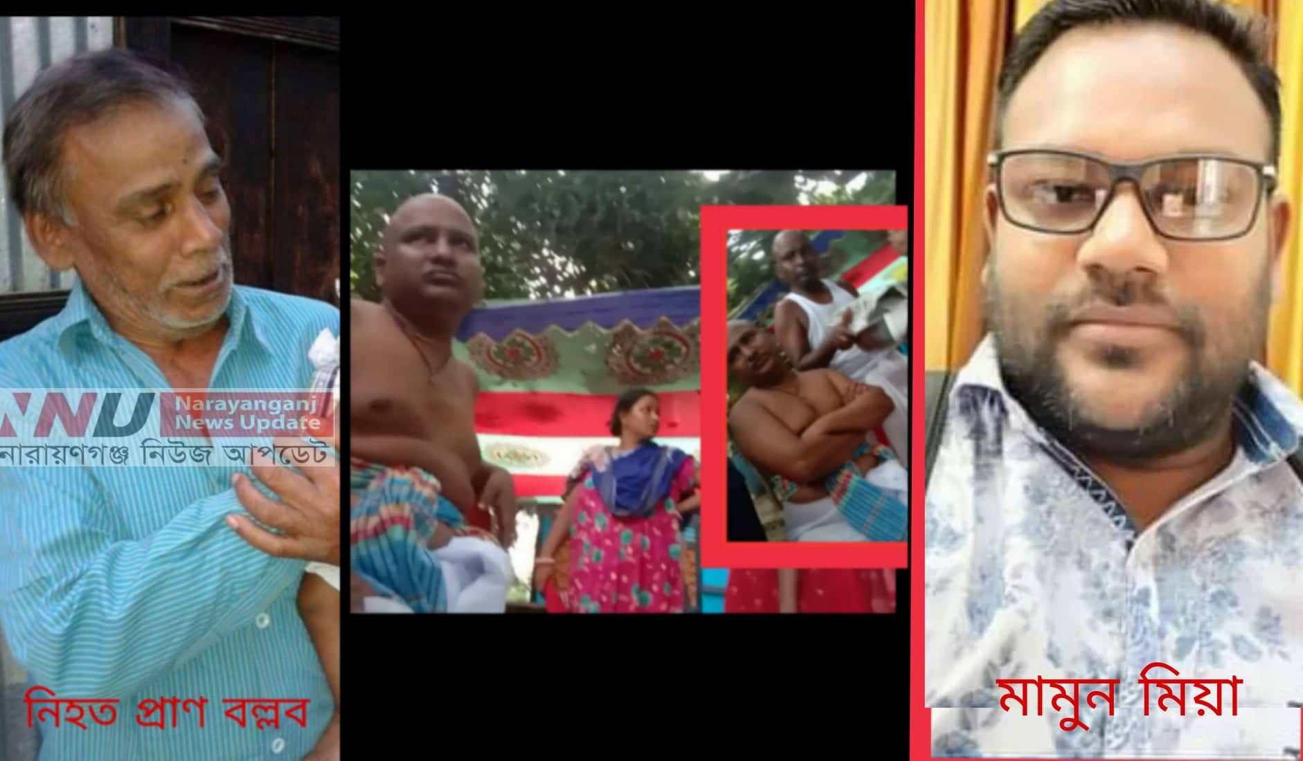 শতাধিক সন্ত্রাসী, স্থানীয় কয়েকজন গণমাধ্যম কর্মী ও পুলিশের কয়েকজন অসাধৃু কর্মকর্তাদের সাথে নিয়ে বন্দর উপজেলার সাবদী মন্দিরে উপস্থিত হয়ে কলাগাছিয়া ইউনিয়ন পরিষদের চেয়ারম্যান দেলোয়ার হোসেনকে এক প্রকার জোড় পূর্বক মন্দিরে নিয়ে এনে সালিশীর মাধ্যমে বৃদ্ধ প্রাণ বল্লব সরকার (৬৫) হত্যা মামলা ধামাচাপা দিতে প্রাণপণ চেষ্টা চালায় হত্যা মামলার আসামী মামুন মিয়া ও তার সহাযোগিরা সন্ত্রাসীরা ।