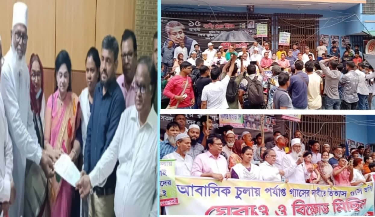 নারায়ণগঞ্জ মহানগরীর বিভিন্ন এলাকায় দীর্ঘদিন যাবৎ আবাসিক চুলায় পর্যাপ্ত গ্যাস না থাকায় ফুসে উঠেছে নগরবাসী । বারবার ধর্ণদিয়েও কোন প্রতিকার না পেয়ে আবাসিক পর্যায়ে গ্যাসের দাবিতে তিতাস গ্যাস ট্রান্সমিশন ও ডিস্ট্রিবিউশন কোম্পানি লিমিটেডের নারায়ণগঞ্জ আঞ্চলিক কার্যালয় ঘেরাও করেছে নগরবাসী ।