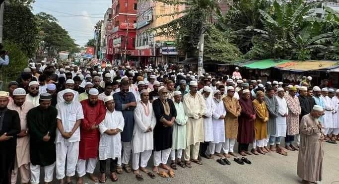 নারায়ণগঞ্জে মুন্সিগঞ্জে বিএনপি পুলিশ সংঘর্ষের ঘটনায় গুলিবিদ্ধ হয়ে নিহত যুবদল কর্মী শাওনের গায়েবানা জানাজা অনুষ্ঠিত হয়েছে।