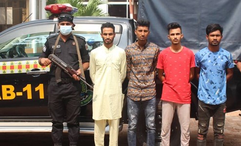 আটকরা হলেন আল আমিন হোসেন বাঁধন, মো. সুমন হাসান, মো. জিতু, এমরান হোসেন। তাদের বিরুদ্ধে সোনারগাঁও থানায় মামলা প্রক্রিয়াধীন রয়েছে।