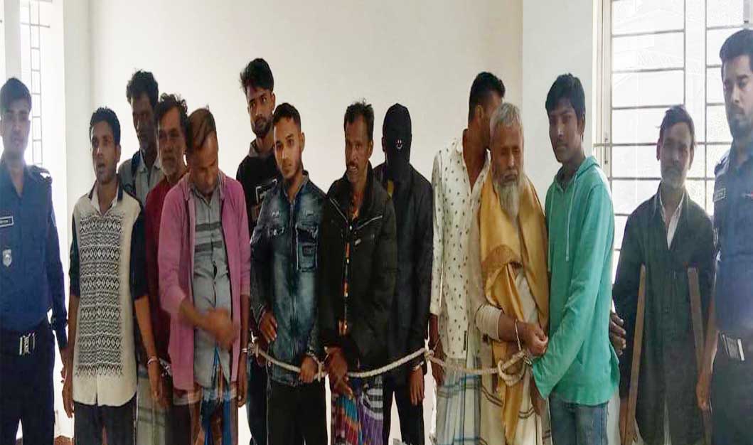 গ্রেপ্তারকৃতরা হলো বন্দর উপজেলার শাহী মসজিদ এলাকার হাবিবুর রহমানের ছেলে ওয়ারেন্টভূক্ত আসামী রকি (৩০) দড়িসোনাকান্দা এলাকার টুকু মিয়ার ছেলে ওয়ারেন্টভূক্ত আসামী রবিউল (৪০), দড়িসোনাকান্দা এলাকার মৃত আহাম্মদ মিয়ার ছেলে ওয়ারেন্টভূক্ত আসামী টুকু (৬০), শাহীমসজিদ খালপার এলাকার আব্দুল খালেক মিয়ার ছেলে ওয়ারেন্টভূক্ত পারভেজ (২৩), পিছকামতাল এলাকার মিলন মিয়ার ছেলে ওয়ারেন্টভূক্ত মাইনুল (৩৩) লাঙ্গলবন্দ মালিবিটা এলাকার নিতাই দাস এর ছেলে ওয়ারেন্টভূক্ত লিটন দাস (৩৫) কদম চন্দ্র দাস এর ছেলে ওয়ারেন্টভূক্ত তারেক চন্দ্র দাস (৪৫) একরামপুর এলাকার মৃত বাচ্চু মিয়ার ছেলে রাজা (২২) লাঙ্গলবন্দ এলাকার বাঘাল এর ছেলে লাল মিয়া (২০) লাঙ্গলবন্দ এলাকার জয়দেব এর ছেলে সন্তোষ (৫০) দিঘলদী এলাকার রবি চন্দ্র এর স্ত্রী অনিতা রানী (৪৫) দিঘলদী এলাকার অন্দাবাই চন্দ্র এর ছেলে রবি চন্দ্র(৫০) ও জাঙ্গাল এলাকার মজিদ মিয়ার ছেলে ওয়ারেন্টভূক্ত আসামী হজরত আলী(৪৫)।