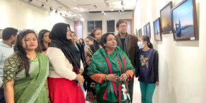 রোববার (২৫ ডিসেম্বর) সন্ধ্যা সাড়ে ৬টায় গ্যালারীতে এসে উপস্থিত হন তিনি।  এ সময়ে ফটোসেন্সের প্রতিষ্ঠাতা সৌরভ ভুঁইয়া ও সদস্যদের সাথে নিয়ে প্রদর্শনী ঘুরে দেখেন এবং কেক কাটেন।