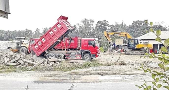 তিন মাস ধরে এনডিই নিরাপত্তা সিগন্যালম্যানের দায়িত্ব পালন করছেন মো. শামীম। তিনি বলেন, এখানে এক পাশে তাঁদের গাড়ি মেরামত ও রক্ষণাবেক্ষণ করা হয়। অন্য পাশে প্রতিষ্ঠানটির নিজস্ব বালু রাখা হয়েছে। এখানে ১২টি ড্র্রাম ট্রাকসহ অন্যান্য যানবাহন ও যন্ত্রপাতি রয়েছে। ওই জায়গায় সওজের কোনো মালামাল নেই।