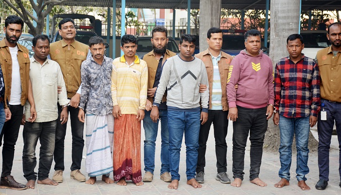 আটক ব্যক্তিরা হলো- খলিলুর রহমান মৃধা, জামাল আকন্দ, আবু সালে হাওলাদার, বিল্লাল, আবু হানিফ ও মো. ইউসুফ। পরে তাদের সিদ্ধিরগঞ্জ থানায় হস্তান্তর করা হয়।