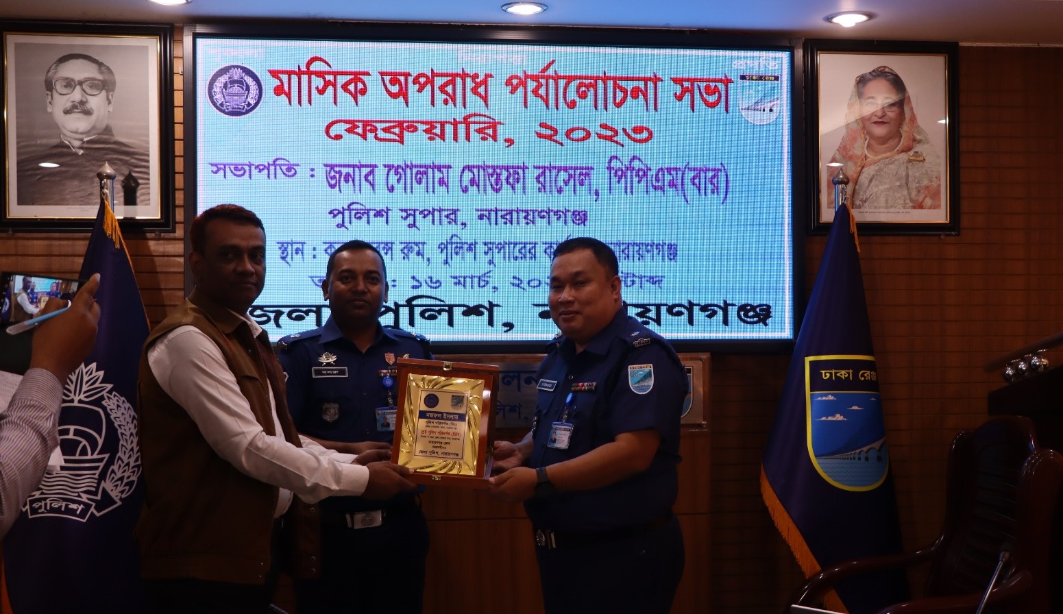 বৃহস্পতিবার (১৬ মার্চ) সকালে নারায়ণগঞ্জ জেলা পুলিশের কার্যালয়ে পুলিশ সুপার গোলাম মোস্তফা রাসেলের হাত থেকে শ্রেষ্ঠ ডিবির ওসির ক্রেসটি গ্রহন করেন নজরুল ইসলাম।
