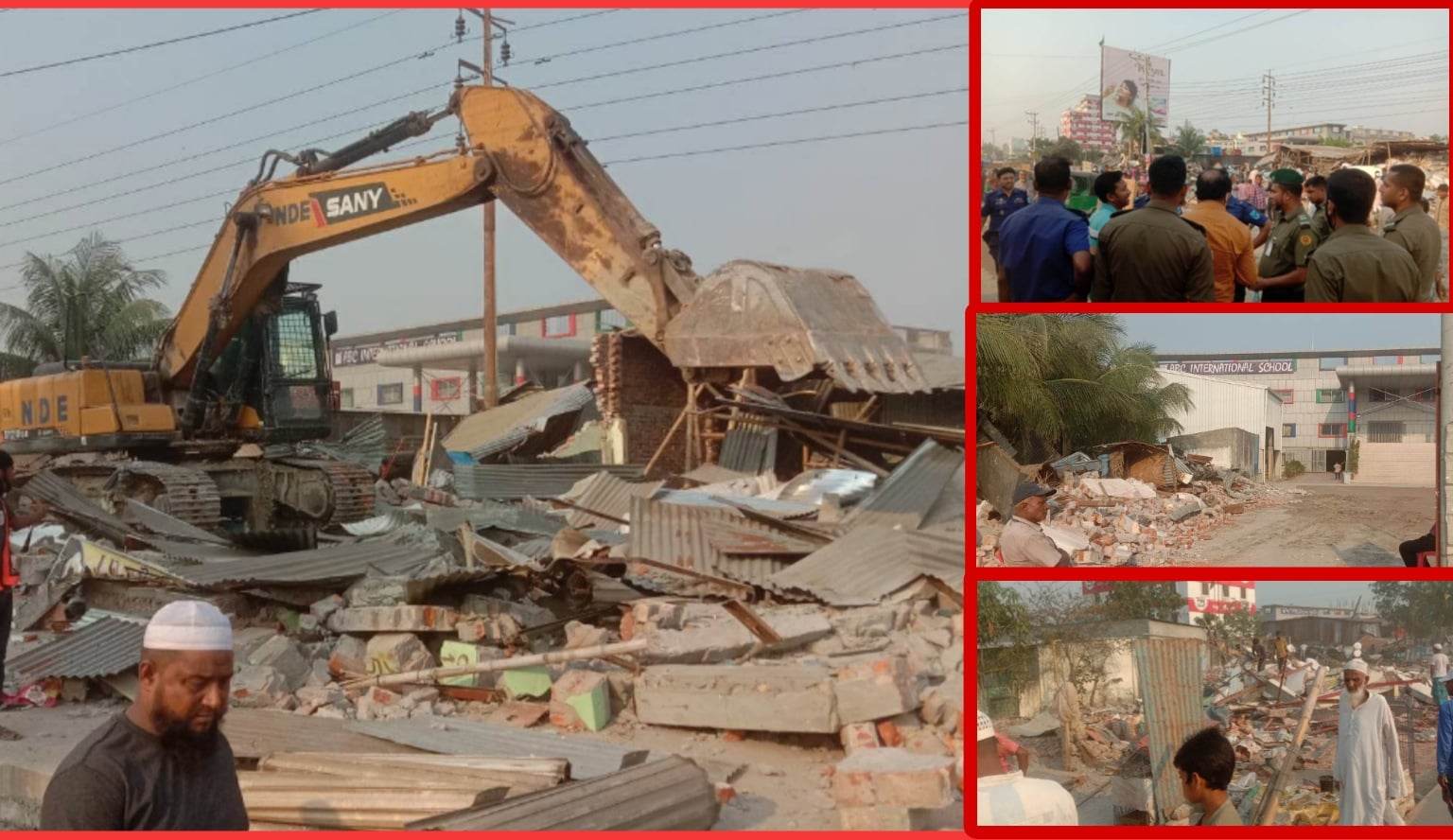প্রায় এক কিলোমিটার এলাকায় শতাধিক অবৈধ দোকানপাটসহ বিভিন্ন ব্যবস্থা প্রতিষ্ঠানের আধা পাকা ও সেমিপাকা স্থাপনা ভেঙ্গে গুঁড়িয়ে দেয়া হয়।