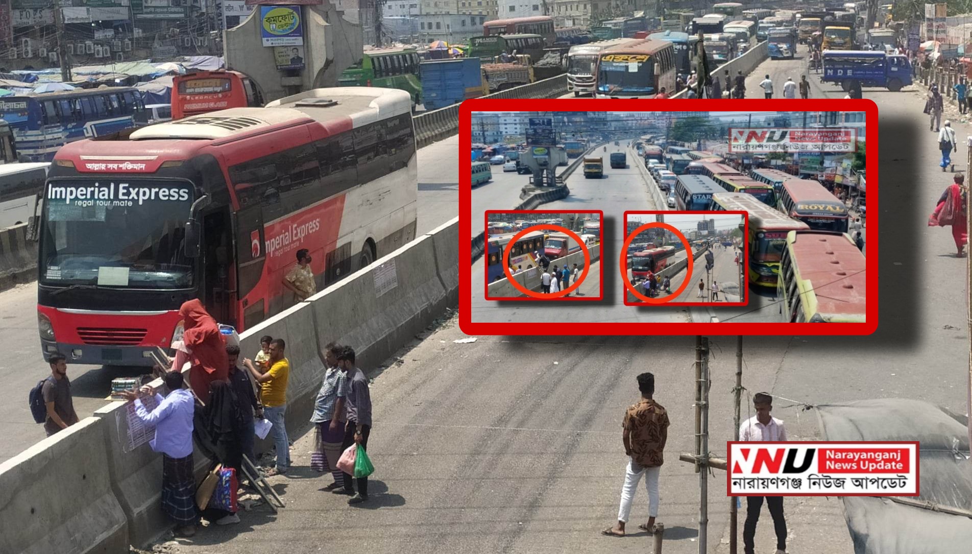 ঢাকা চট্টগ্রাম, ঢাকা সিলেট মহাসড়কের নারায়ণগঞ্জের অংশের শিমরাইল কাঁচপুরসহ সর্বত্র রোড ডিভাইডার থাকায় একদিকে যেমন যানজটে আশংকা রয়েছে অপর দিকে রয়েছে প্রাণহানির শংকা। ঈদ উল ফিতরে বাড়ি ফেরার তেমন দৌড়ঝাঁপ এখনো শুরু না হলেও এরই মধ্যে পরিবহণের নৈরাজ্য যেন বৃদ্ধি করেছে প্রায় সকল পরিবহণের লোকজন । এরা কোন আইন মানে, মানে না কোন নির্দেশনা । অভিনব কায়দায় এবার রোড ডিভাইডার থাকায় মই দিয়ে যাত্রী উঠা-নামানোর কর্মকান্ড শুরু করেছে। পুলিশ দেখলে দৌড় আবার সেই একই কান্ড চালু করেছে অসাধু পরিবহণ মালিক শ্রমিকরা।