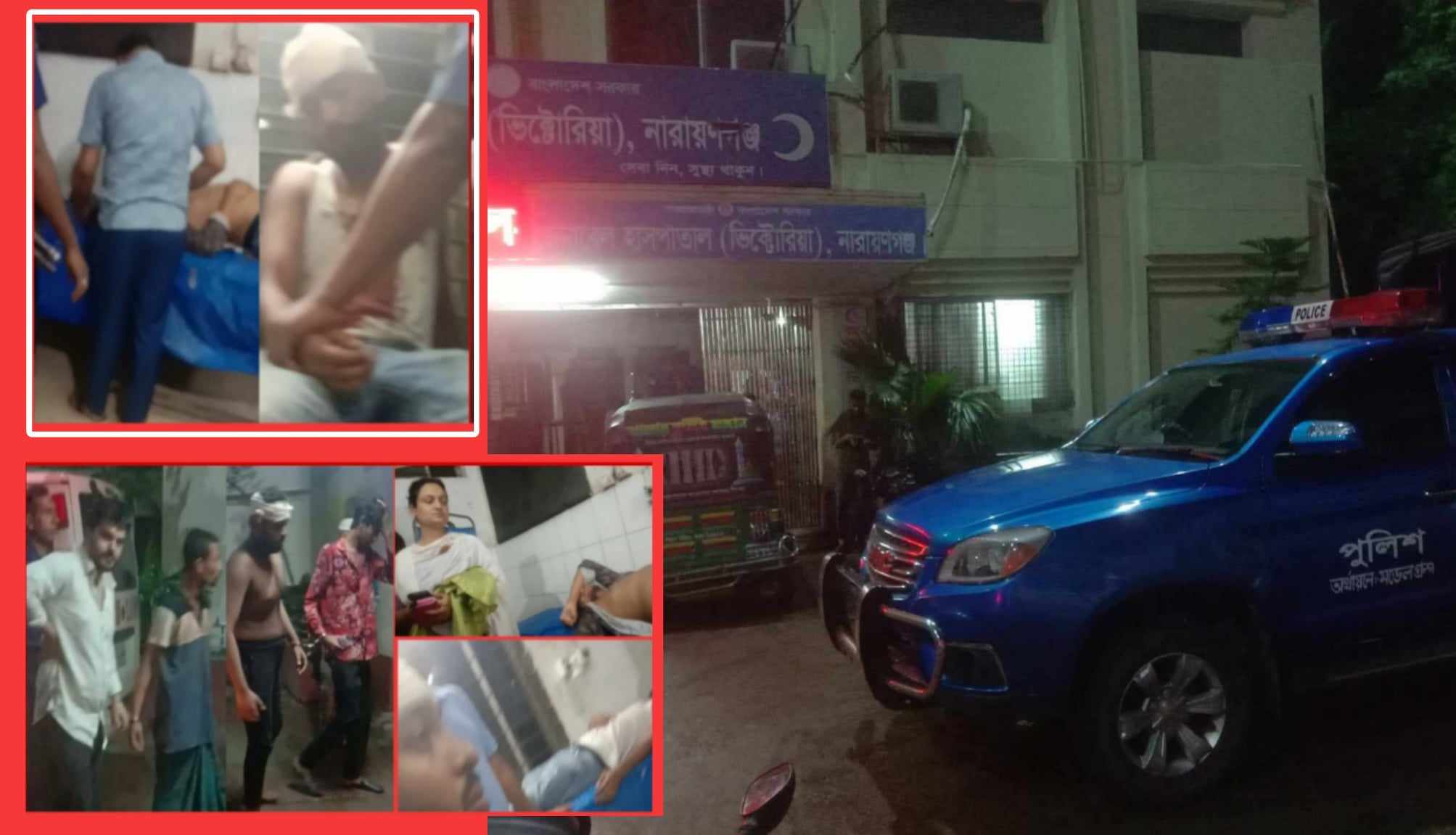 দুই ছাত্র, ব্যারিস্টার এবং কয়েকজন পুলিশ সদস্য গুরুতর আহত হলে প্রথমে আহতদের উদ্ধার করে নারায়ণগঞ্জ জেনারেল (ভিক্টোরিয়া) হাসপাতালে চিকিৎসা প্রদান করে ব্যারিস্টার ও ছাত্রদের গ্রেফতার দেখায় সদর থানা পুলিশ।