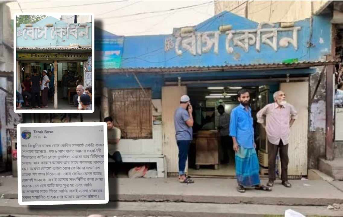 কিছুদিন যাবৎ বোস কেবিন সম্পর্কে পেপারে আসছে । গত ৮ মাস যাবৎ আমার সহধর্মীনী লিভারের জটিল রোগে ভূগছিল, এখনো তার চিকিৎসা চলছে । যার কারণে আমার তার সাথে সবসময় থাকতে হয়। অযথা কোন গুজবে বোস কেবিনের সম্মানিত গ্রাহকগণ কান দিবেন না। বোস কেবিন যেমন আছে তেমই থাকবে । সবাই আমার সহধর্মীনীর জন্য দোয়া করবেন । সে যেন দ্রুত সুস্থ হয় এবং আমি আপনাদের মাঝে ফিরে আসি…….