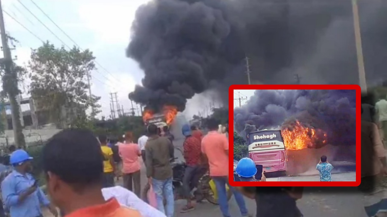 রূপগঞ্জে চলন্ত যাত্রীবাহী বাসে আগুন