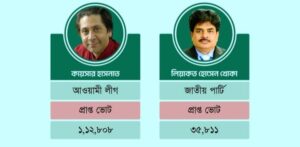 তার নিকটতম প্রতিদ্বন্ধি লিয়াকত হোসেন খোকা লাঙ্গল প্রতিক পেয়েছেন ৩৫ হাজার ৮১১ ভোট পান। নির্বাচনে কায়সার হাসনাত ৭৬ হাজার ৯২৭ ভোটের ব্যবধানে জয়লাভ করেছে। এছাড়া স্বতন্ত্র প্রার্থী এইচএম মাসুদ দুলালের ঈগল প্রতিক পেয়েছে ২১৪ ভোট, বিএনএম ওয়ারিউল রহমান খাঁন নোঙ্গল পেয়েছেন ২৬৬ ভোট, নারায়ণদাস বিকল্পধারা কুলা প্রতিক পেয়েছেন ১৯১ ভোট, বাংলাদেশ সুপ্রিমপার্টির আসলাম একতারা প্রতীকে পেয়েছেন ৭২৫ ভোট, বাংলাদেশ সাংস্কৃতিক মুক্তিজোটের মো. আরিফ পেয়েছেন ১৩৬ ভোট ও তরিকত ফেডারেশনের মুজিবুর রহমান মানিক ফুলের মালা পেয়েছেন ২৮৯ ভোট।