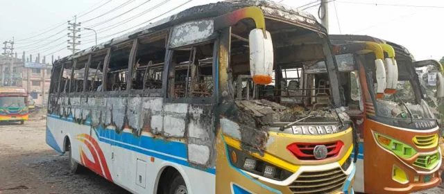 রূপগঞ্জে ভোররাতে দুই বাসে আগুন